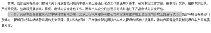 另外普通消费者暂时可能还买不到这两款车,消息最后有表明两款车辆将由重庆长安车联科技有限公司、北京出行汽车服务有限公司两家使用主体开展上路通行试点,这也就说明两款车目前应该不会面向普通消费者销售。